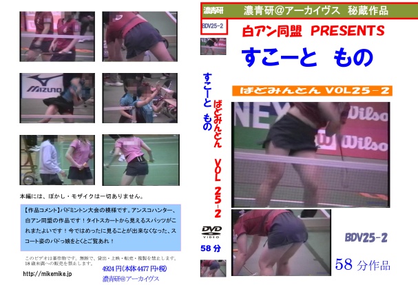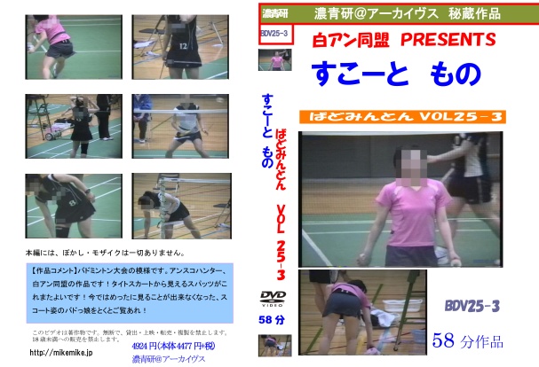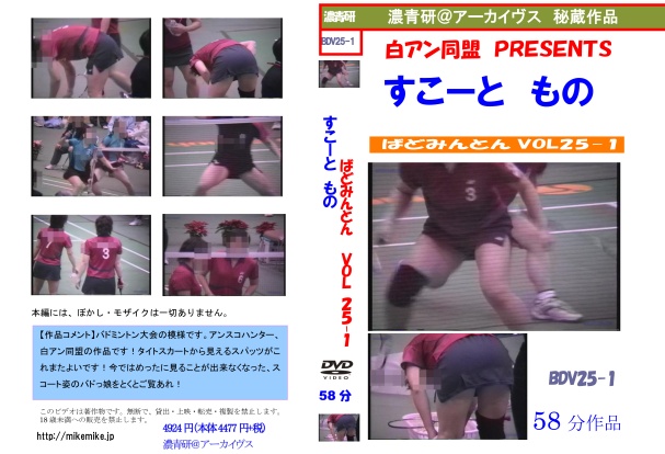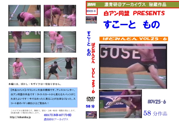 上赤下黒ユニチーム娘同士の試合からスタート!ユニのタイト感と躍動感が素晴らしい!31分ころからは上青・スコート黒のチームが登場、ダイナミックなスマッシュががGOODです!43分ころからは上ピンク下黒のユニチーム娘が登場、シャトルを拾う際にアンダーのお目見えシーン連発!いいかんじです!
