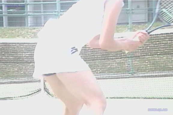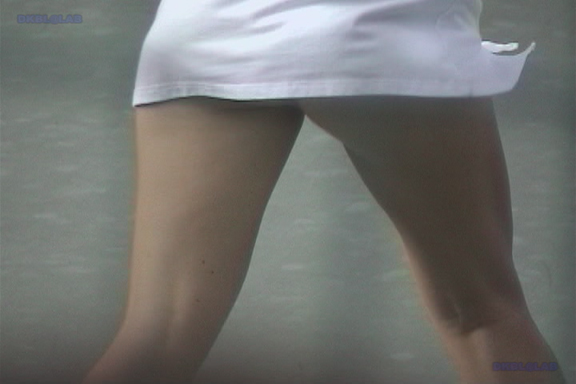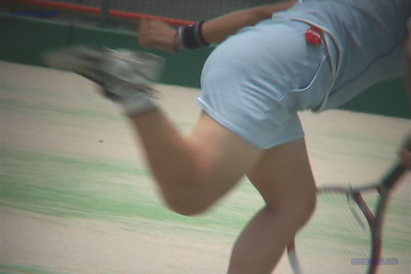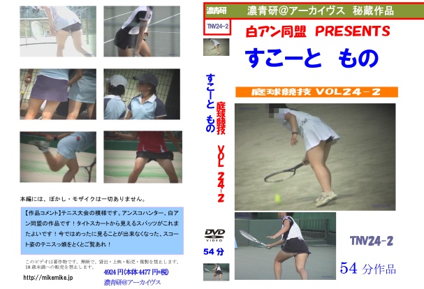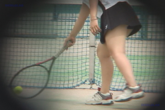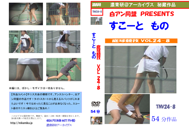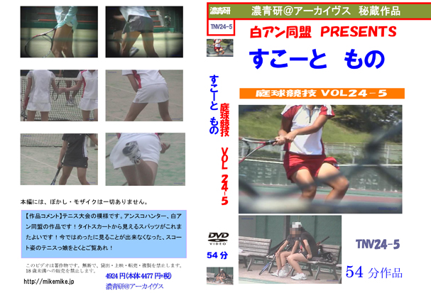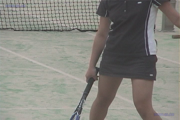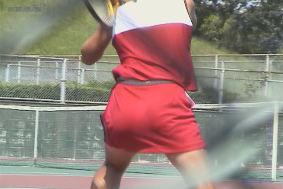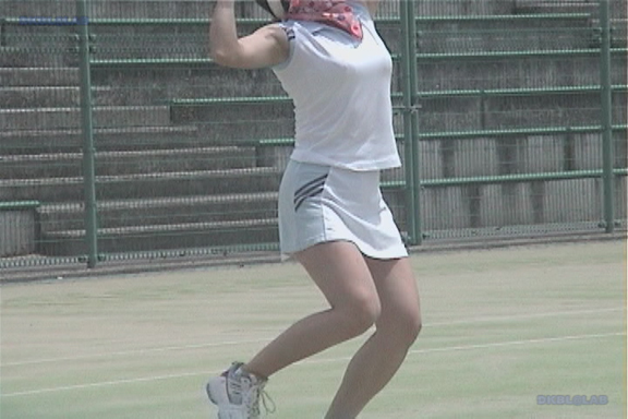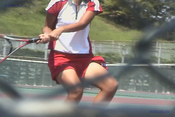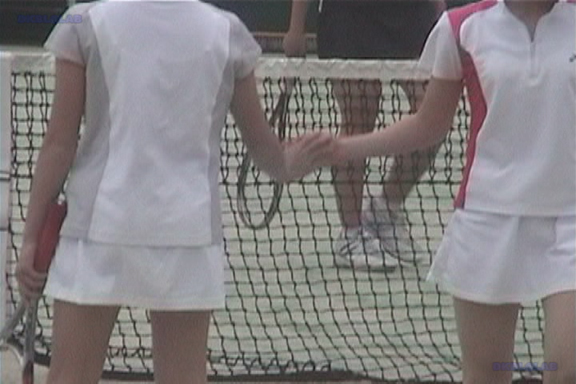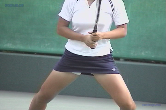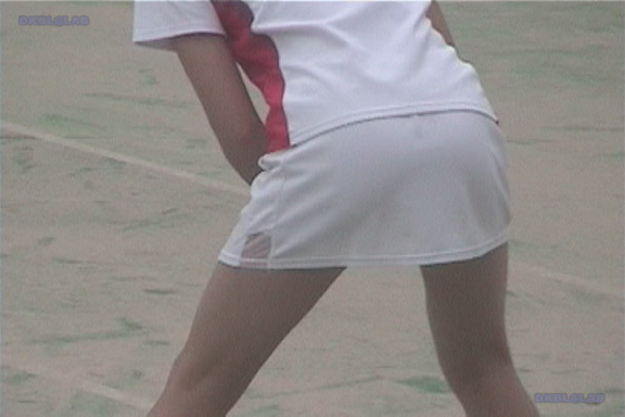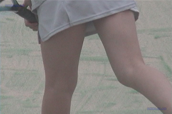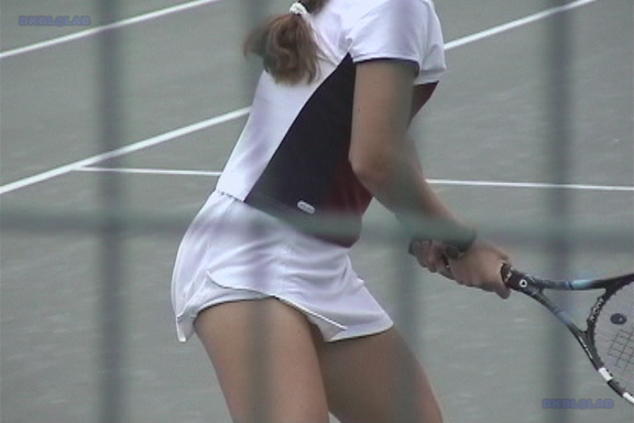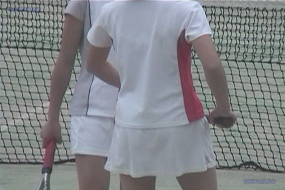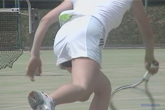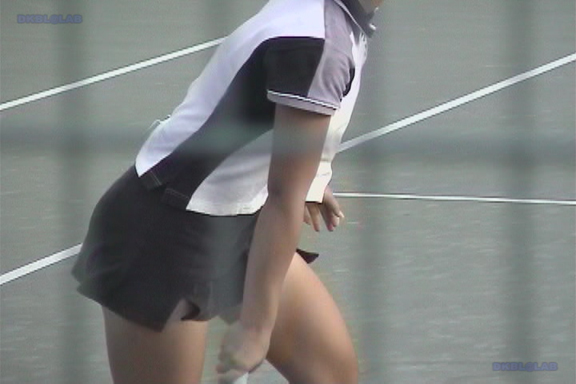 ビギナー娘の試合シーンからスタート!黒タイトユニ娘と白タイトユニ娘との試合模様、双方ともインナーラインバッチリ!13分ごろより黒タイトユニ娘とグレータイトユニ娘の対決!ダブルスリットスコートで躍動感満点!スコートをひるがえしボールを拾うシーンがとってもいいかんじです!