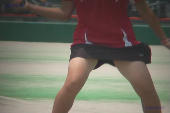 ビギナーよりちょい上娘の試合模様から。頻繁に繰り広げられるサーブ・スマッシュ!たびにお目見えするインナーに感動!!23分ころより別会場へ、こちらはベテラン娘の試合模様。パワフルなサーブの際には力強く明色アンダーお目見え!!流石です!!!