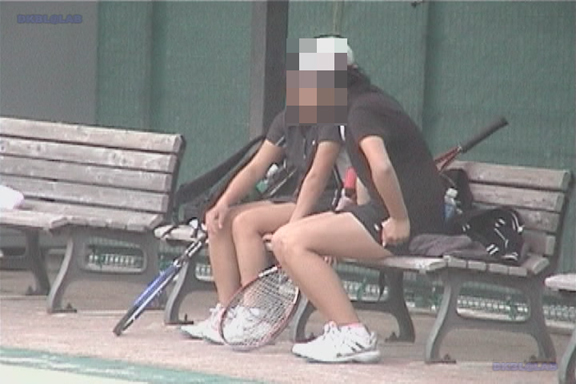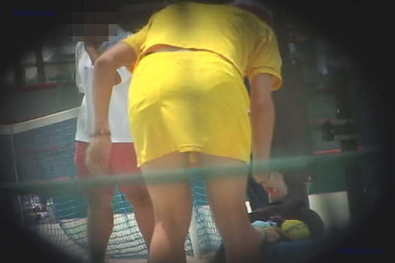 ビギナー娘に熱心な指導している白ユニ娘の模様からスタート!頻繁に繰り広げられるサーブ・スマッシュ!たびにお目見えする短いくろぱん!!熱意がこちらにも伝わって参ります!お次は43分ころより上空下黒ユニ娘の登場!短め黒スコートが風にユラユラ!とっても素敵です!