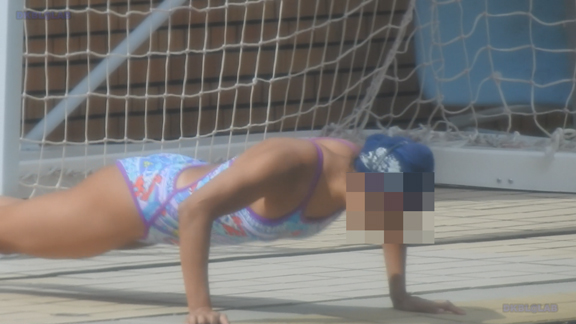 キョウスイ娘たちの練習会の模様です。練習の合間の水につかってのんびりとくつろぐメンバーのシーンから始まります。バケツの水を手ですくい、少しずつ体にかけていくキョウスイ娘も。23分ごろより別日の練習会シーンへ。寒いのかVキョウスイに上着を羽織っておりますがVエリアはそのまま!何とも素晴らしい!そして練習に突入!練習合間の休憩しているV型キョウスイ娘にクローズアップ!続いて34分ごろより別日の練習会シーンへ。Vキョウスイのまま腕立てシーンなど見どころもりだくさん!