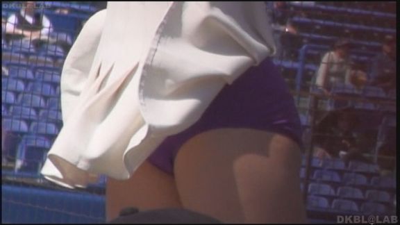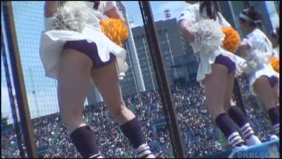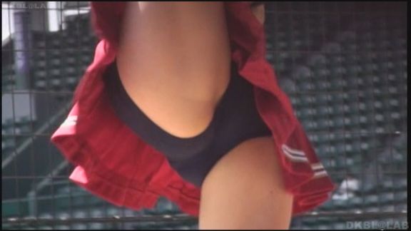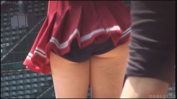 比較的短いスカートからおしり下が丸見えのシーンあり。23分ころにはいったんスタンドを離れた静かなところでの練習シーン。ユニフォームのままかがんで荷物の整理。無防備なおしり周りが丸見え。