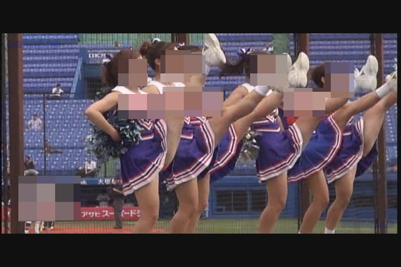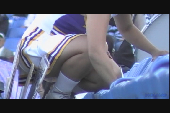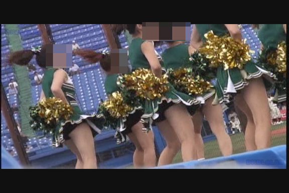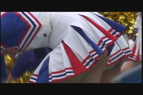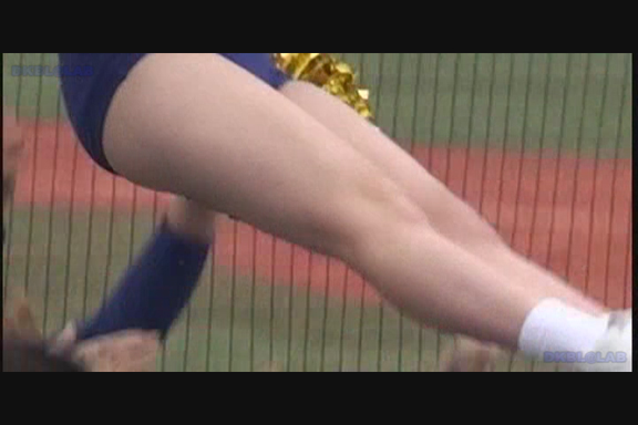 通常プリーツスカート・青みの強い紫Vアンダーチーム。超近距離からのショットややカメラを斜めに向けて 脚がよりよく映るようにしています。連続で流れるリズムにのせて食い込みを直す暇がなく 食い込んだままポンポン持って懸命の応援シーン。 後半はコバルトブルーに赤白アクセントユニ。夏の大会ノースリーブ。 それでアンダーが青なら驚きもしませんが…なんと深紅のVだからうれしいじゃありませんか。 中盤にはちょっと珍しい、試合が立て込んでナイト開催になってしまった様子も収録。 スコアボードのきらびやかさに負けないチア嬢生足。 (16:9ワイド画面対応作品です)