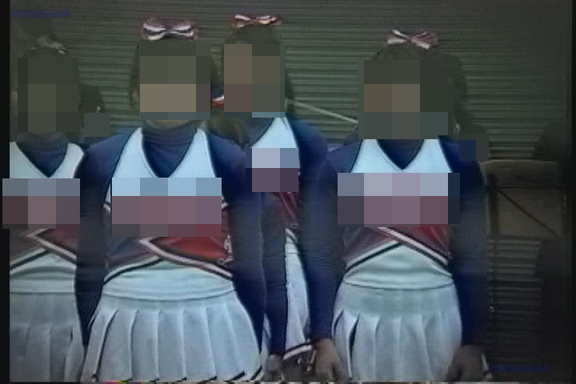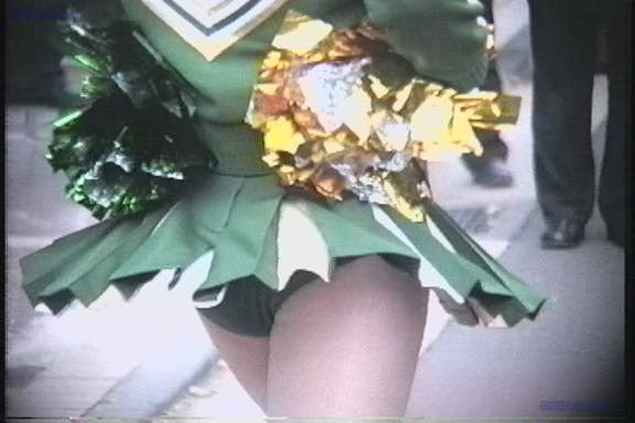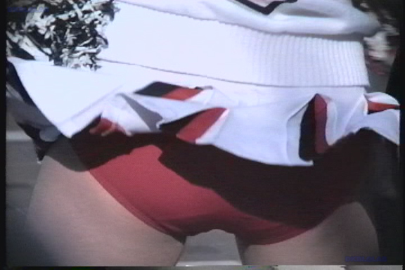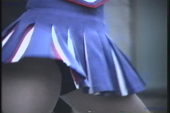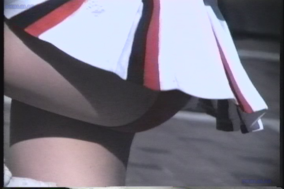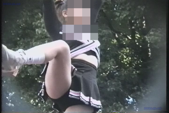 黒ベースピンクと白のラインのチアユニ。短冊形スカートで少しの動きで太ももアンダーが見えてくるいい奴。アンダーは黒のホットパンツ。常時見えているおへそまわりもセクシーでございます!