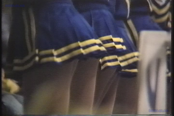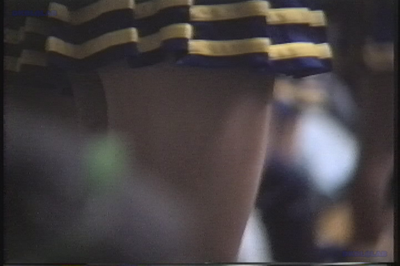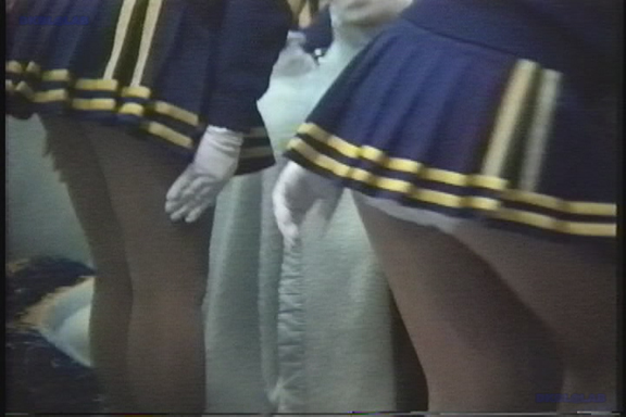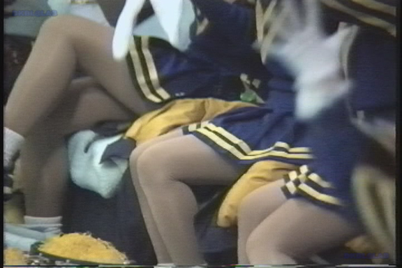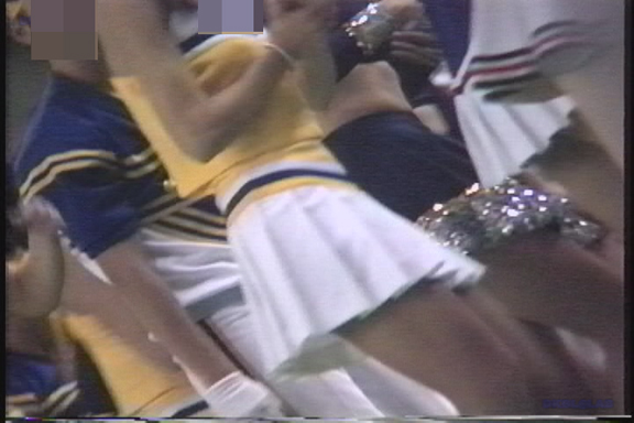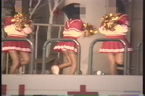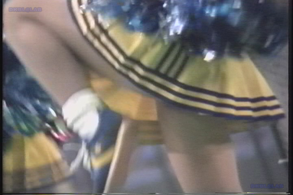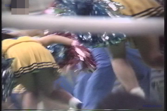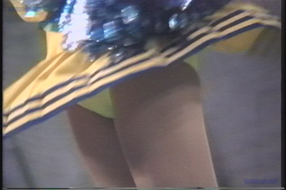 氷上格闘技の応援チアですが、生地をたっぷり使ったパフパフしたユニがちょっと面白いチーム。ドレスのようなユニでありながら、しっかりミニスカで注目を集めていく形。後半は全体をあがめるアングルでの映像。アンスコのお出まし比率がグッと上がります。