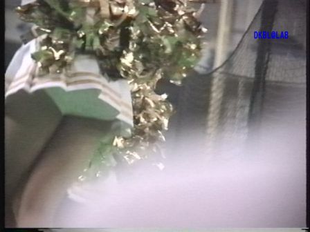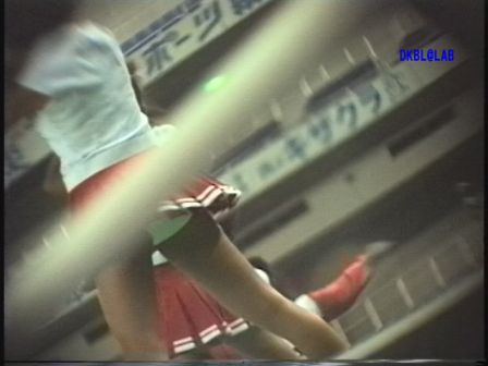 開始早々ひらひらするところのアップから。1分ほどで応援開始の挨拶がありお辞儀をしますがその時にアンダー部が丸見えになります。26分頃に登場の白地に金と青と赤のストライプの入ったチアユニ嬢が見えまくっています。