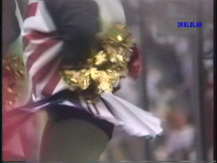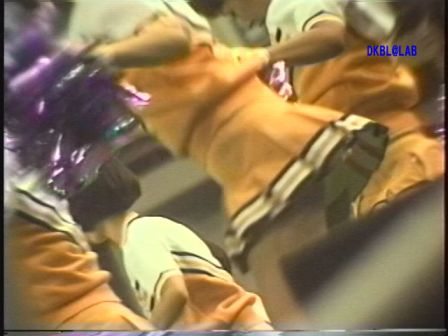 黄色ユニ娘から登場。応援中のシーンはもちろん待機中のおしゃべりシーンまでふんだんに収録。18分過ぎに出てくる陸上パンツ姿での応援シーンが珍しい。陸上競技場では普通なこのユニ、スタンド脇で見るとすごく新鮮。後ろには当時のテニスルックで応援する娘もいます。37分頃からはここはダンス会場か!と思うくらいの本格的なサンバチーム様のVカットがスゴイ水着を着た嬢が登場します。