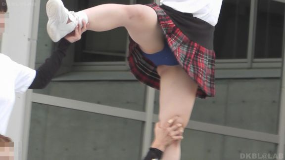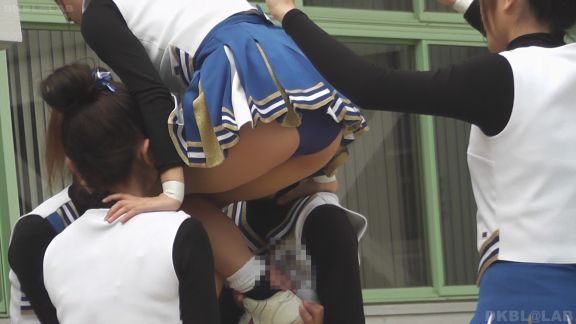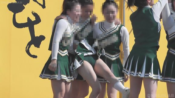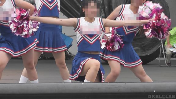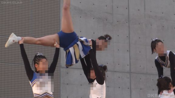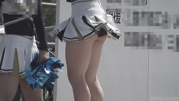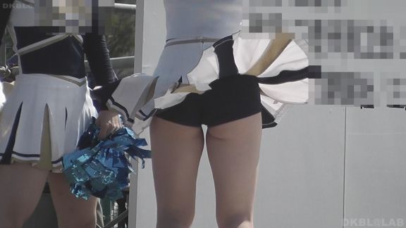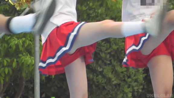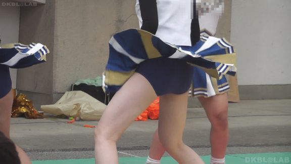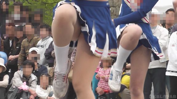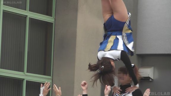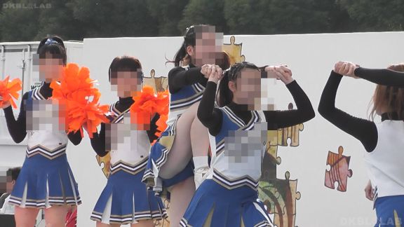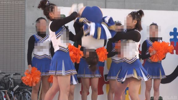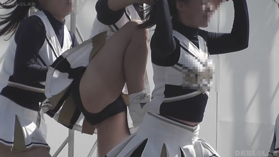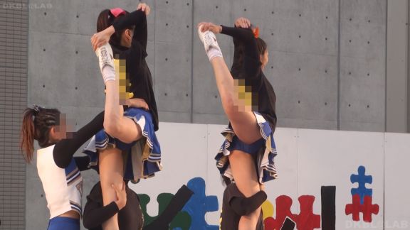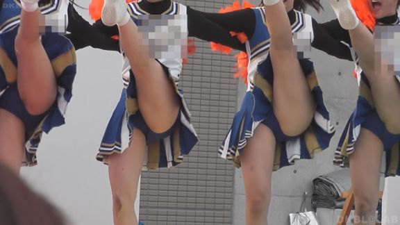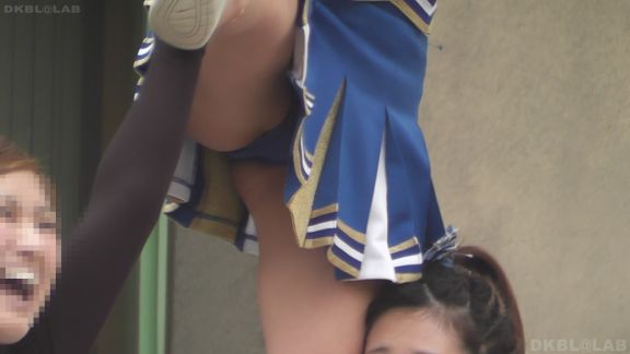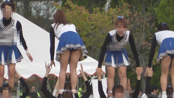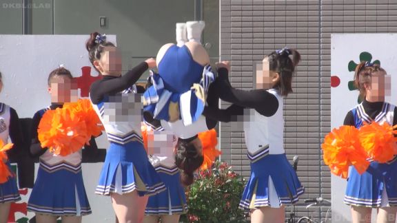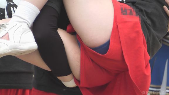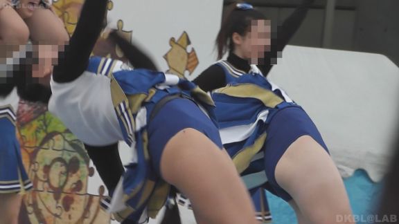 イベントスタートにあたりチアっ娘が演技服装のまま芝生のグランドにちょこんと座って開会式の式辞を聞いているちょっと面白いシーンからスタート。相変わらず演技の後は小さい娘を招き入れて体験会の開催。子供の動きに夢中でスカからちらちらしております。20分頃からは1-1前半のイベントの1年後。同じチアチームではなく今度は白と紺のユニチームが参加。ここでもお子様参加の体験イベシーンあり。49分頃からは一番よく出ている上が白下が水色と白のユニチーム学祭の次年度の模様。