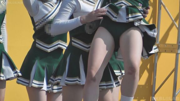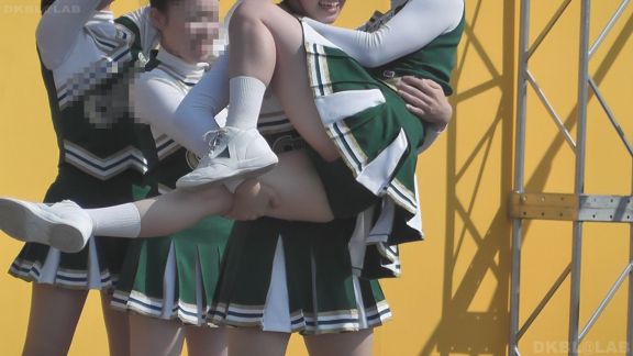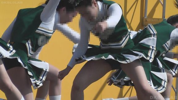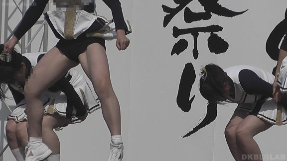 グリーンユニチームが登場!スコもグリーンVタイプ!いきなりスタートしますのでお見逃しの無いように…ソックスも長過ぎない、ふくらはぎ中ほどまでのジャストサイズ。髪型もおおむねポニテで統一。清潔感が素晴らしい。演技内容(ワザ)の紹介シーンがあり実用的です(私も初めて知った技の名前があるほどです)途中、和装の舞踊シーンが5分ほど入って16分頃から同じグリーンチアユニチームの2回目公演がスタートします。1回目でお気に入りの娘がまたまた演技します。28分頃からは別イベントに行きます。学祭の様子かな?上が白下が水色と白のユニ。こちらもアンダーはスカートと同色のVタイプの娘が多い。ホームらしく場慣れしたリラックスした感じがよい。時間もたっぷり最後までこのシーンが続きます。ステージが他の部に占拠されている間にも脇に練習用スペースを用意。スイッチが完全に入っていないチア娘を15分にわたって激写。もちろん競技服装のまま。これは貴重な記録です!