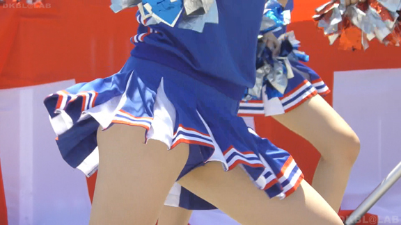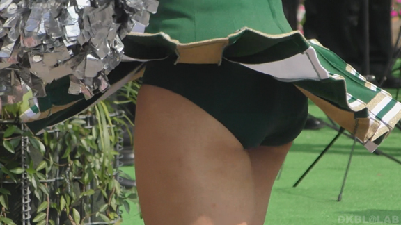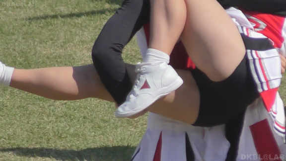 緑ユニチームからスタート。ポンポン持って左右に揺れるような演技。そのたびにグリーンアンダーこんにちは。23分ころからも有名チーム赤紺に白アクセントのユニ。夏の撮影かアンダーシャツ非着用で脇シーンもいっぱい。深紅のVアンダーがまぶしい。有名チームだけあってかわいい娘多し。47分頃まで長尺撮影。49分頃からはシーンとユニが変わりますがまた同じチームの演技。今度は白青ベースに赤がアクセントのユニに変わります。ちょっと変わった上からのアングルが新鮮。