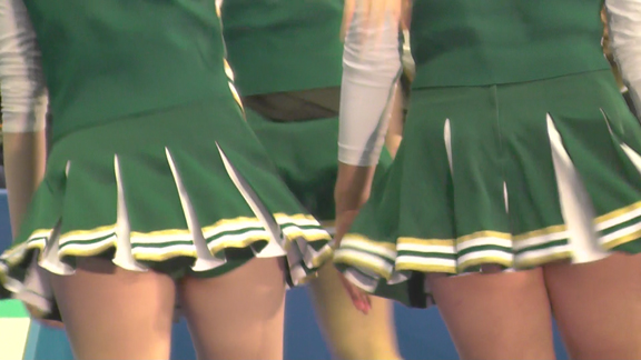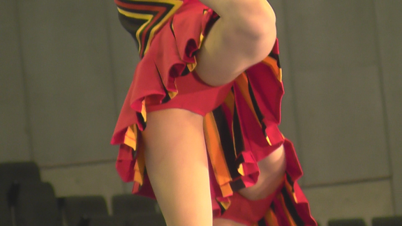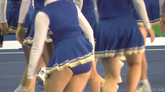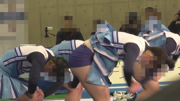 夜でも活躍チアチーム!照明とカメラがよく独特の映像になっている。エンジと白のユニ。10分ころからは競技チア。いきなりVパン青赤白ユニ。アンダーは青。そのあとのオレンジ紺ユニチームもVパン。着地の時にアンダー丸見えになってそのままになるシーンあり。45分頃にも有名チームが。白紺エンジのユニチーム。