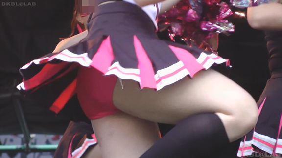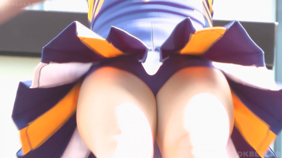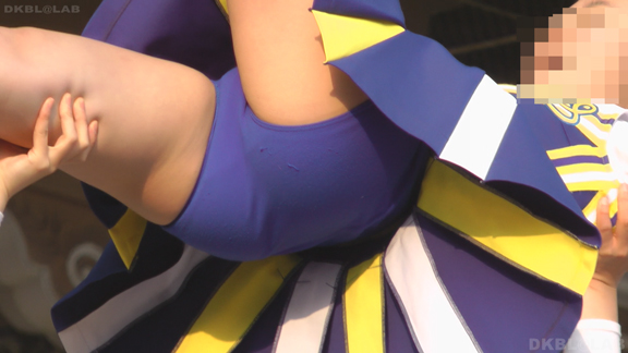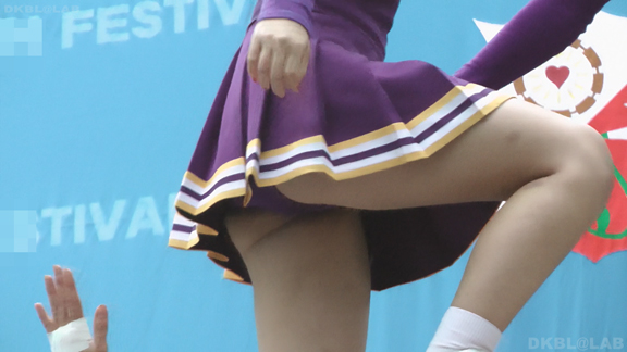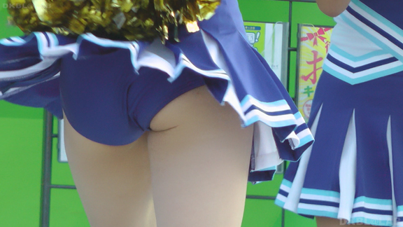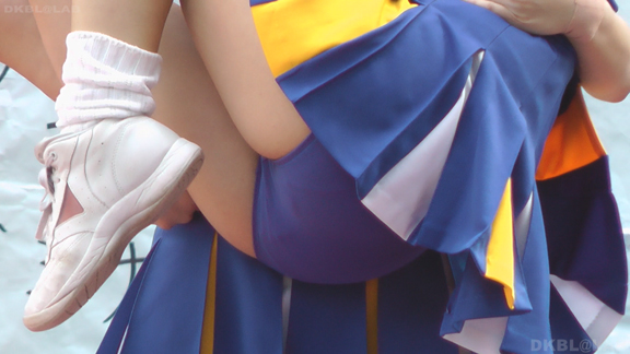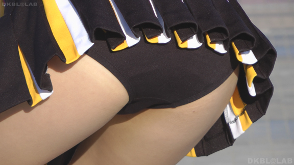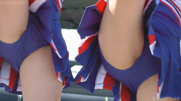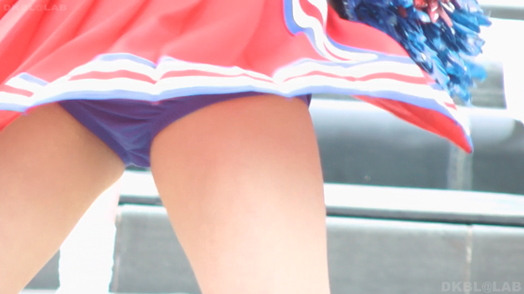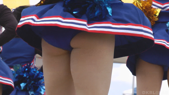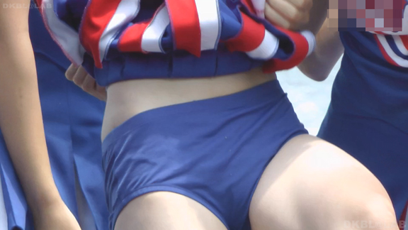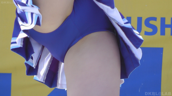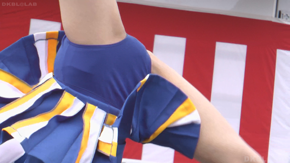 青と黄色のユニチームが元気にノースリで登場。アンダーは青V。なかなかかわいい娘も多くて1発目から好感触。開始前のポンポンおきのシーンでいきなりVパン丸見え。青Vパンで常時へそ見えのセクシーユニ。