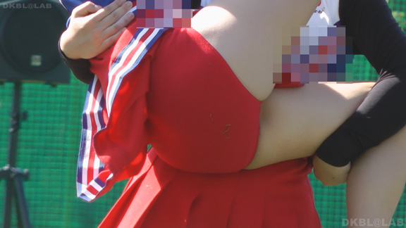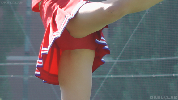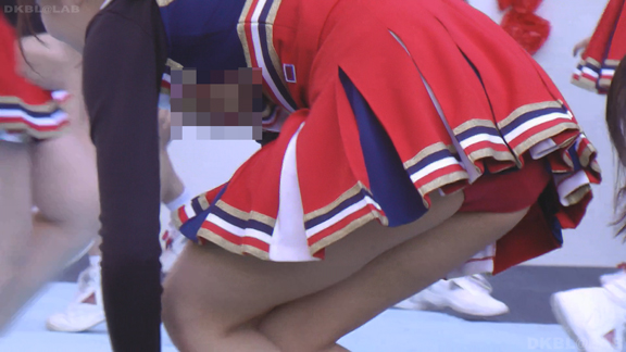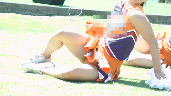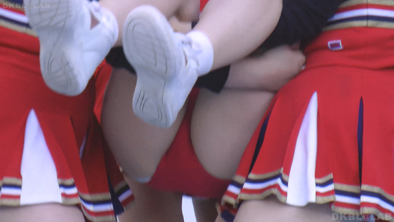 青地に白赤のアクセントのユニチーム。アンダーは青Vでくるぶしまでの白ソックス。こちらもチームでチア衣装を切り替え。チームBは赤系のユニでアンダーは赤V。割合長めに15分ころまで収録。まだ続くVパン祭り。青赤白のユニチーム。こちらもポンポンとりのシーンでVパン丸出しに!同チーム他イベントを含め30分ほど収録。