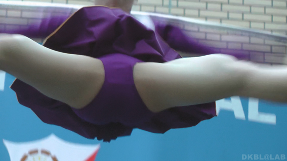 Vパンチームをよく見てとってきてます!青と黄色のユニチームが再び。ノースリくるぶしソックスかわいい娘そろいに青Vパンということなし。ポンポン置き時にアンダー丸見えシーンあり。そして44分過ぎから青と白のユニチームの演技。今回も青のVパン絶好調です!58分のラストまでご一緒に。