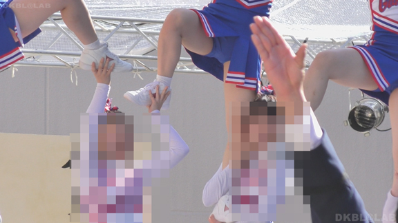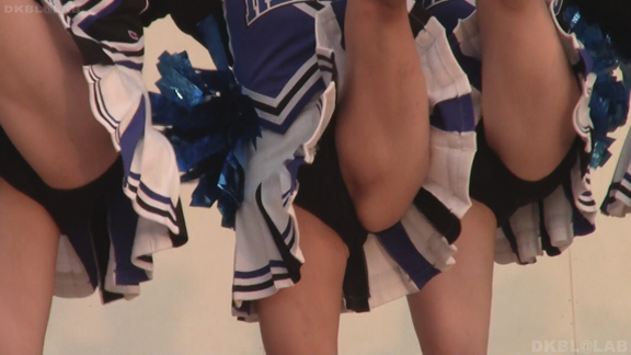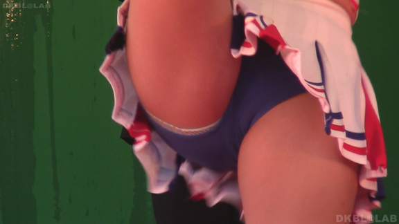 これがいいんだ。スイッチオフ状態で待機中の娘のシーンをいっぱい。チームジャンパーを羽織っただけなのでちょっと飲み物をとったり、チームメイト同士でじゃれているときにいちいち見えるグリーンVアンダーがたまらん!アングルもよく数人分のきれいな生脚を画面いっぱいに撮影。ゲーム再開、応援スタート。スイッチが入った娘が先ほどまでの緩いシーンとは一線を画すアクションシーンを披露!白と青、赤のアクセントの応援ステージ。かわいい娘もいっぱい。