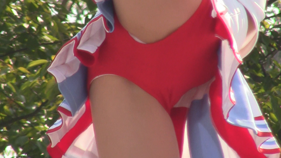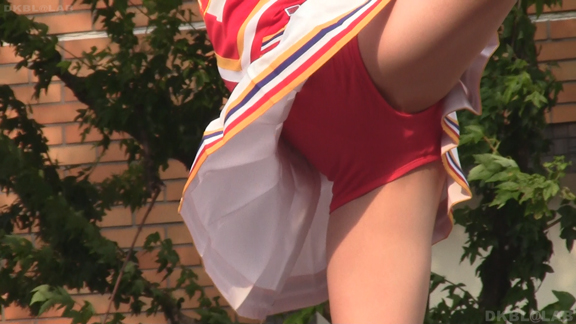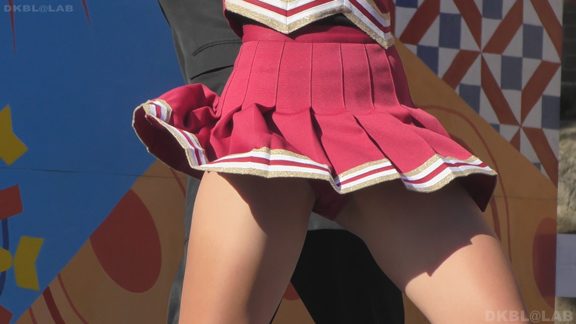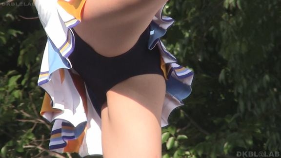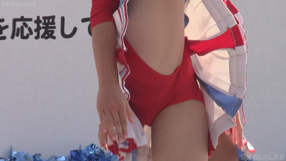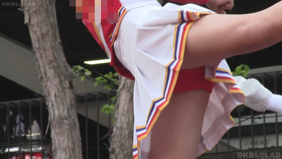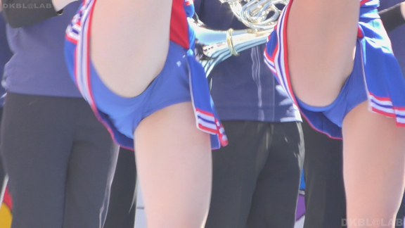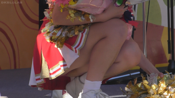 赤と白のユニチームからスタート。パレードをしながらスタンツもしてしまう忙しさ。層も厚くいろんな娘がいて楽しめます。続いては同じ祭りでもステージでの演技チームに移動。こちらは白地に青濃淡のユニ。濃紺Vアンダーが見もののチーム。アクションシーンもいっぱいでVアンダー見えまくり!