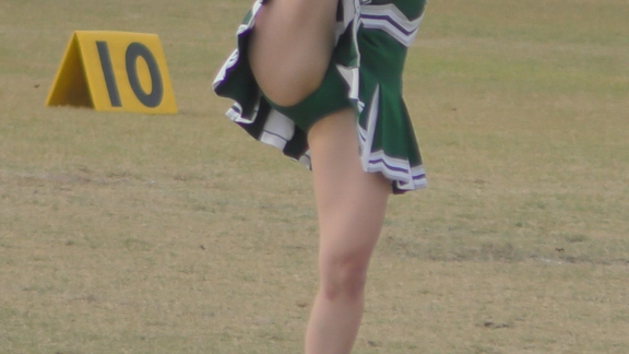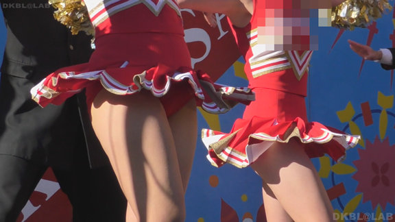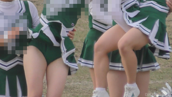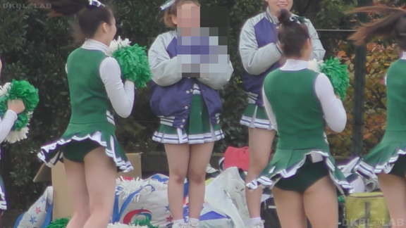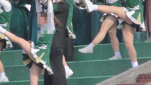 緑アンダーVスコも多数こんにちは。ステージの後は同じチームで今度はアメフトの応援。止まりシーンが中心になりますがじっくり数人の娘を撮影、お気に入りの娘が長く楽しめる。尺が長いので交代制で後ろにはオフの娘がチームジャンパーを羽織ったまま生脚丸出しで待機中。