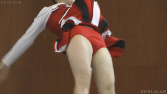 体育館がステージのチーム登場。観客はフロアにそのまま座り、同一平面上で演技する子を追いかける。真紅に白と黒アクセントユニ、アンダーは赤V。外ではないので少しも寒くないわとアンダー全開シーン多数!スレンダーでかわいらしい娘が多くこれはお勧めしたい!