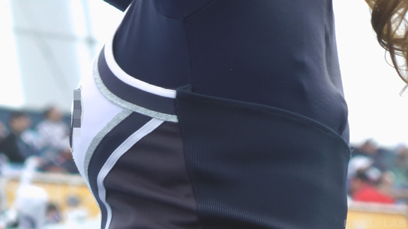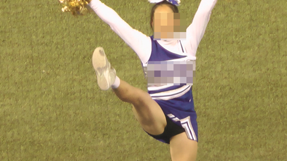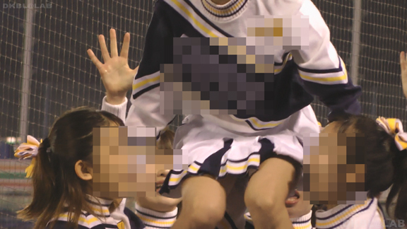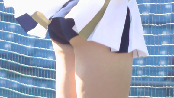 球場での一コマ。夜になってきて、しかも雨が降る中懸命の応援。もこもこセーター生地の上着ながら生脚全開チア衣装がいとおしい。後半は再び短冊形のユニチーム。紺地に白銀のクールな色使い。短冊形スカートからちらちらもれる太ももがセクシー。(※本作品は一部音声が収録されておりません)