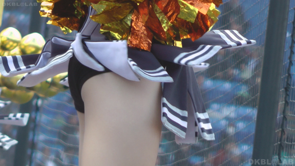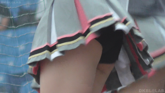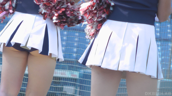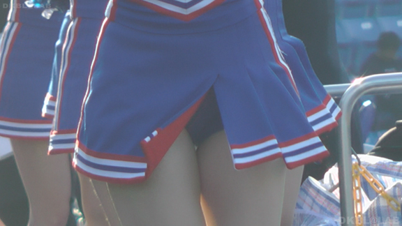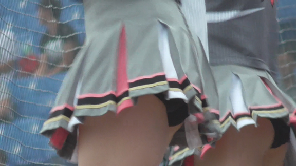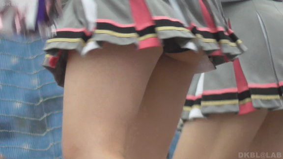 黄色地に青と白アクセントユニ。なかなか至近距離。長い髪をポニテに結った娘がぴか一。その後ろの娘もいいなー。メガホンと結っているリボンの赤がいいアクセント。続いては青ベース黄色白アクセントユニ。ややローからの撮影でわきがよく見えるアングル。(※本作品は一部音声が収録されておりません)