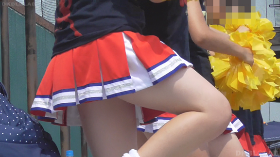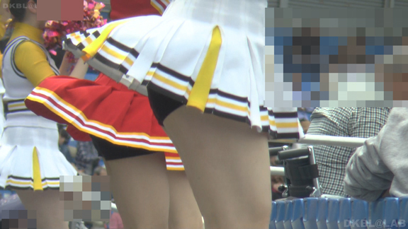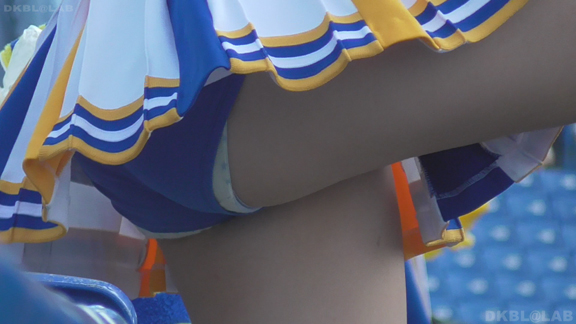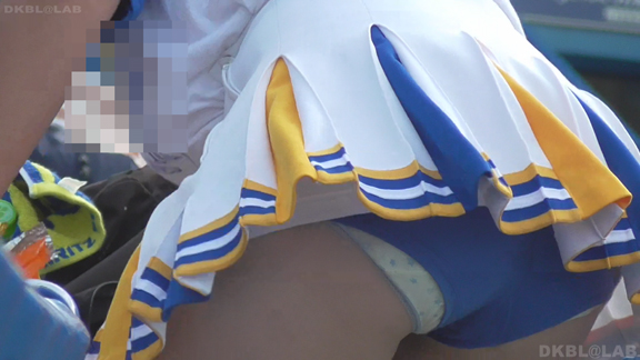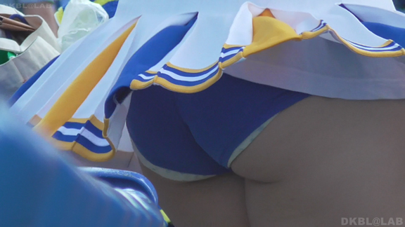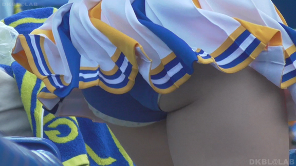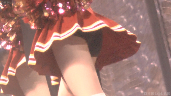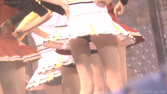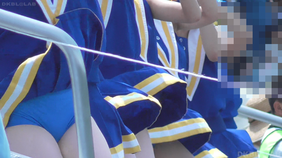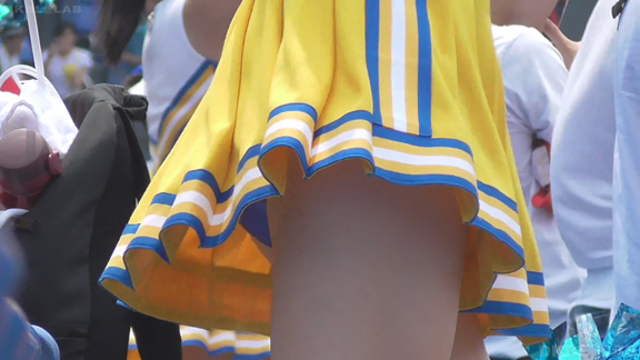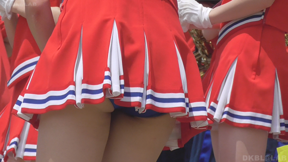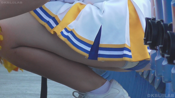 チームもまたまたVパンチーム。水色黄色白の組み合わせ、Vパンは水色。こちらも解放が期待できるアングル、解放の瞬間のやったーという感じをご堪能ください。そしてまたまたまたVパンチーム。コバルトブルーベースに黄色白のアクセント、深いセーラー襟がかわいいチーム。ここも3人横並びでかわいい娘が集まりました。スコートのベース色が寒色なのでチラッとするとすぐにわかります。後半は再び前半で登場のチーム。白いものがはみ出たまま懸命のアクション応援。