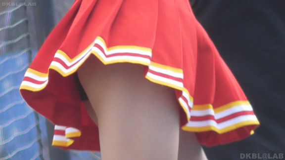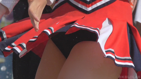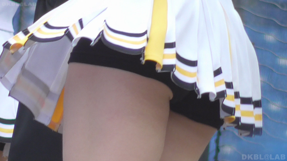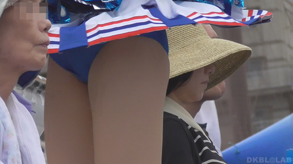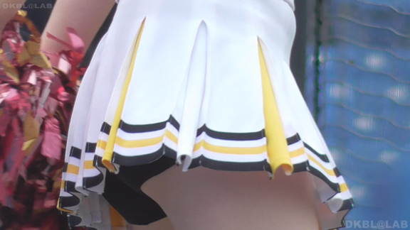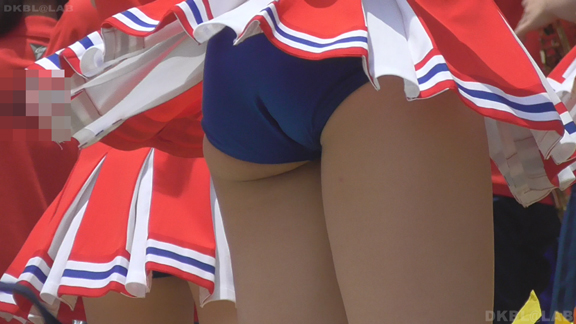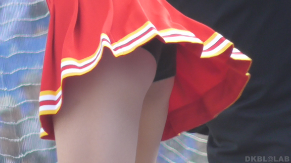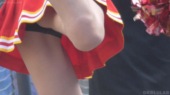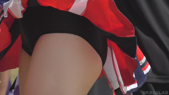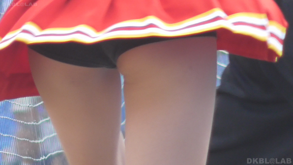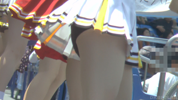 青Vがひらっとスタート。大きな会場で日差しを遮る物が全くない中全身汗まみれで演技。今度は曇りになりチームチェンジ。白ベース青赤のユニ。またまたVパン。くるっとしながらジャンプというパターンで踊っており定期的にちらちらひらひら。曇りなので風が吹いているのか非常にヒラ率が高く、少しの動きですぐVゾーン丸見え。