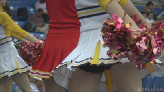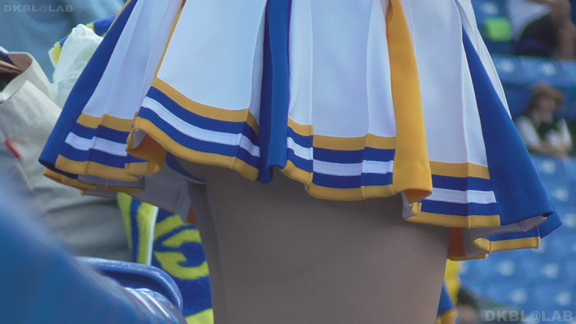 黄色と白ベースで紺のアクセントユニ。明るい髪色の場馴れ感のあるチア娘がグッド。地顔がすでにかわいく、笑顔を振りまきさらにかわいい顔に磨きがかかる!しかも黒のVというのがまたいい。尺長でほぼ全編このチーム。ユニ違いの赤系娘も登場しますがぴか一の黄色ユニ栗色ヘア娘を中心に据え撮影されております。