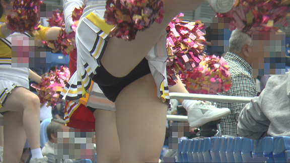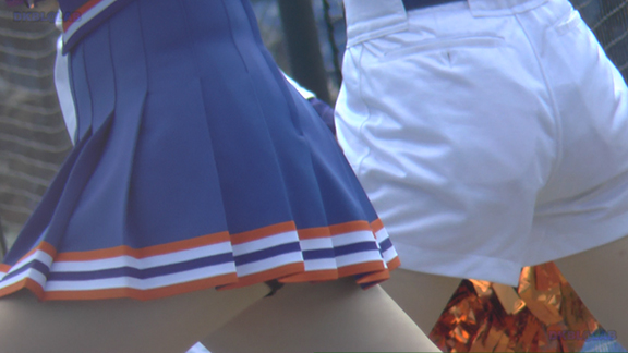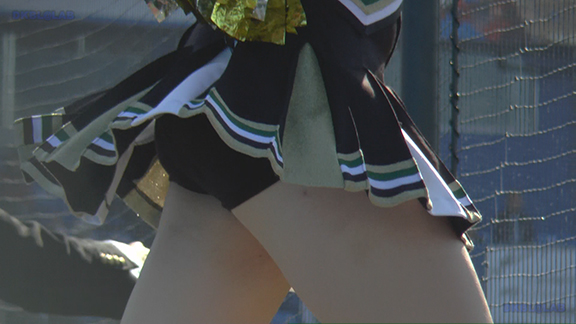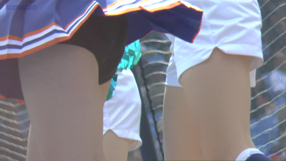 白ベースにユニが登場!応援の時チアっ娘様の一部はスポーツユニみたいな衣装になる娘もいますよね。上は白ポロシャツで下はスポーツパンツを短パンの長さに切ったヤツ。あれもなかなかいいですがそれも入っております。かわいい娘多し。