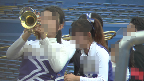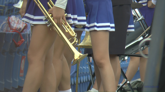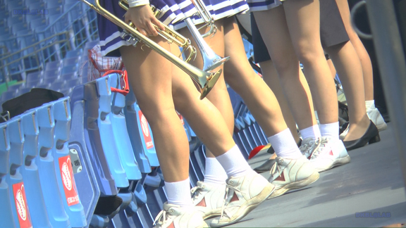 チア衣装娘がそのまま吹奏楽をやってしまうことで有名なチーム。ポンポンではなく管楽器を片手に持っての応援は唯一のもの。現行の黒スパッツアンダーに変更前、今回は青ベースの色違いユニ。1作品丸ごと同一チーム。