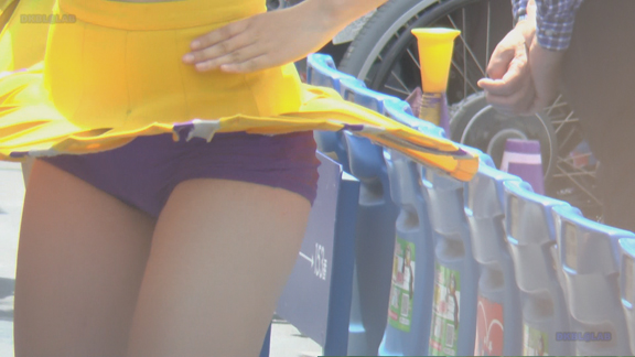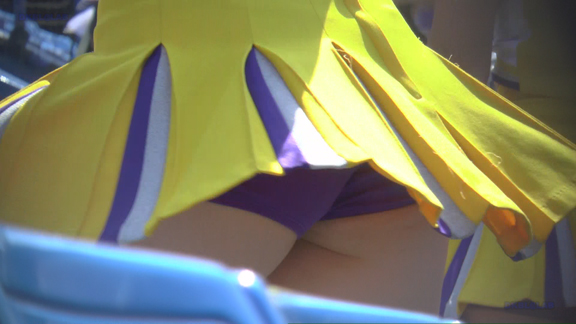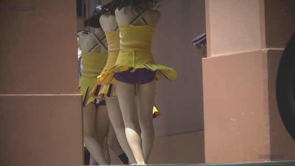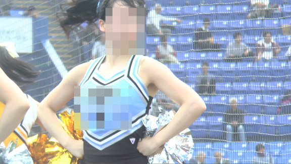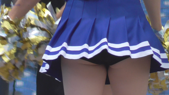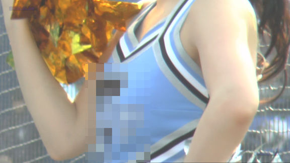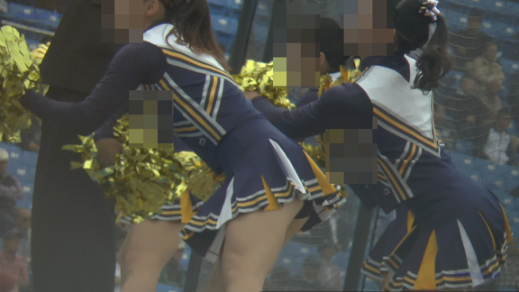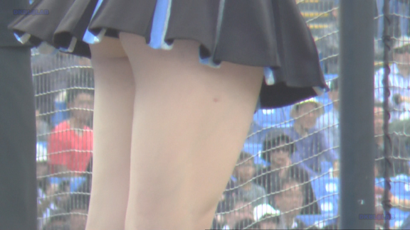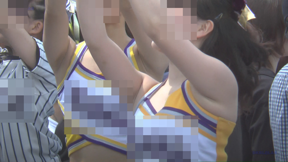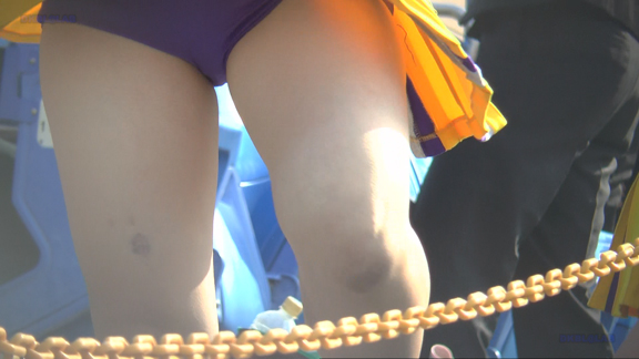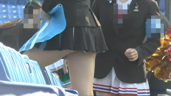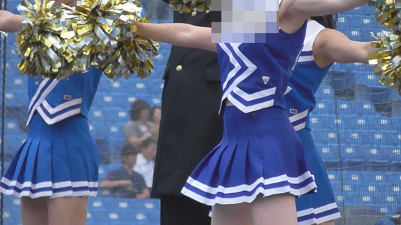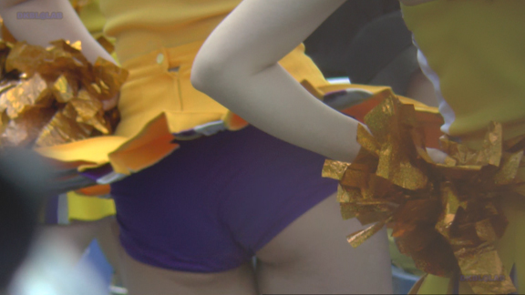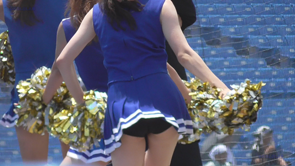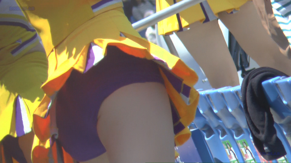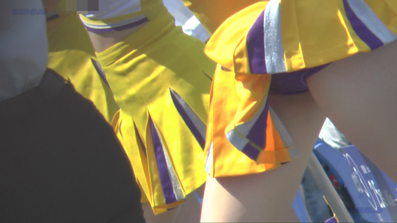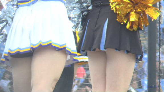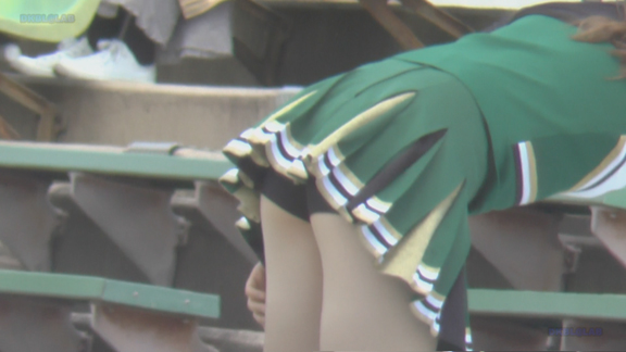 一番人気黄色チアです。野球応援の接近戦。さらにカメラがチア娘に近くなり光線条件もいい驚きの近接ショット。時々こんにちはするアンダー様を含めチアっ娘の神髄をお楽しみください。