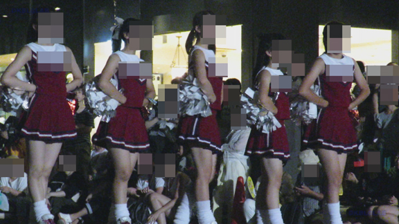 赤と白の2トーンユニのチア娘たち、素朴なルックスにきめ細かな色白感が素敵、約30分たっぷりと。