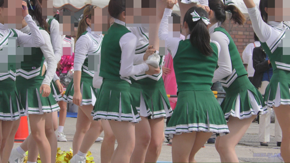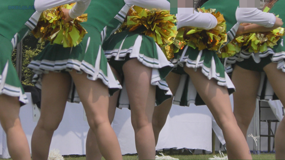 様々なイベント・祭りへチア行脚の作品です!緑ユニチームが広めの会場でのびのび演技、もちろんグリーンのⅤ!本家と付属チームの異なる2つの緑ユニチームを収録しております!付属チームのユニは本家Dチームよりお腹周りがよく見えるように感じですね!