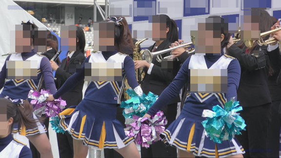 青ベースに黄色白のアクセントのユニのチアチームが登場!そして青のVとドキドキもの!16分ころからは30分超の長尺で白ベースに紫黄色のチアユニチームの登場!生足全開ショートソックス、そして人数が多い圧倒的な演技!素晴らしいの一言です!