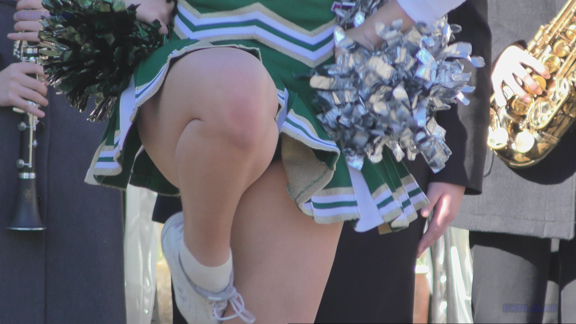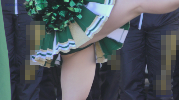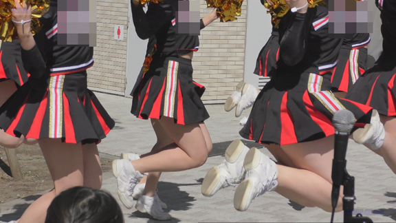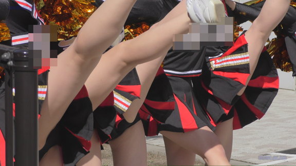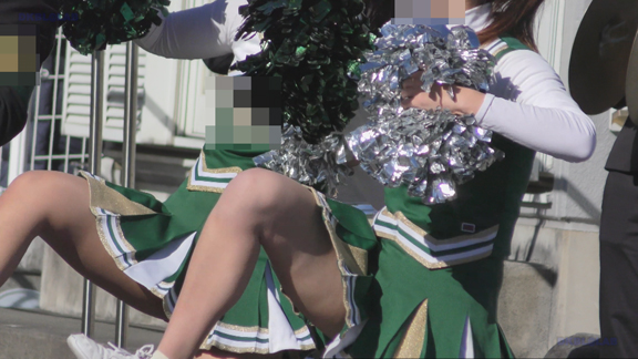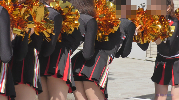 路上応援の緑チアチームのシーンから。緑Vアンダーもいいかんじ、演技を余すところなく収録しております!路上応援は尺長になりますので、ずっと続いて止まらないのがグッド!寒い時期なのにタイツなしの全開で頑張っている娘もいます。後半は黒ベース赤アクセントのチアチームも収録!こちらもいいかんじです!
