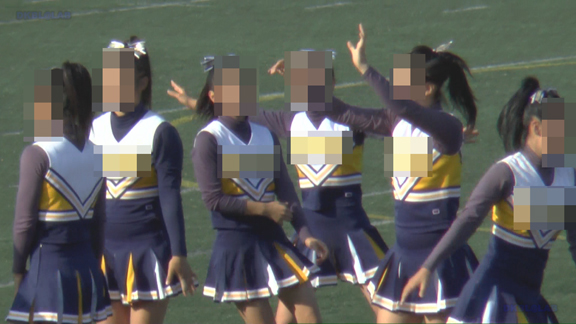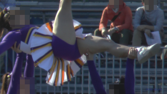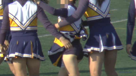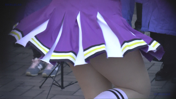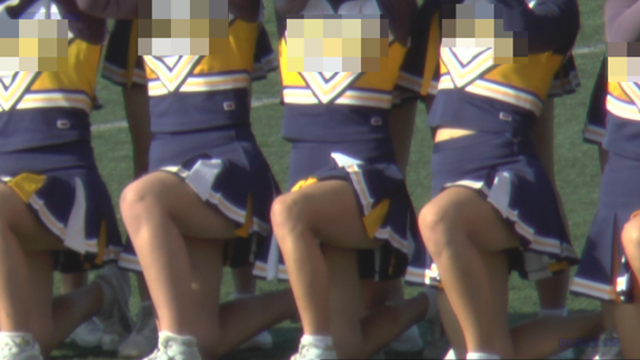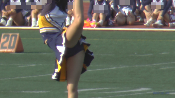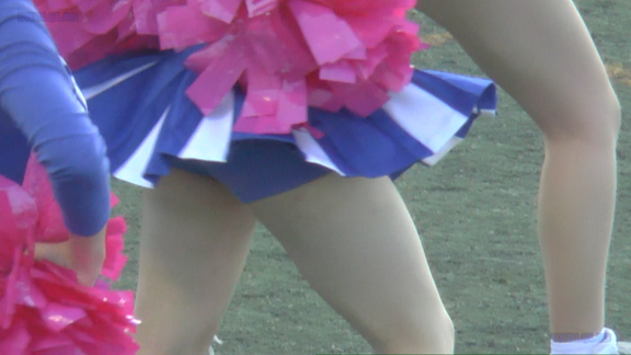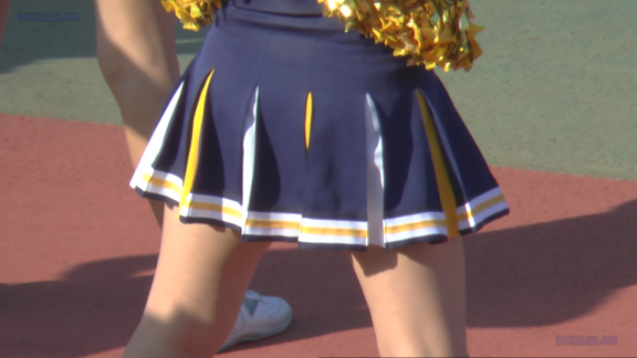 大きなフィールドでの紺・黄・白のチア娘たちのダイナミックなハーフタイムショーのシーンからスタート!紺Vアンダーの娘も!!!スタンツのシーンでお目見えです!お次は16分ごろからラストまで紫・白のタイトなチアユニ娘の応援模様!広いフィールドでのハーフタイムショーではダイナミックな演技を存分にお楽しみいただきます!ハイキックシーンやY字バランスシーンなど、短め紫アンダーも存分のご堪能頂けます!