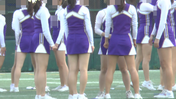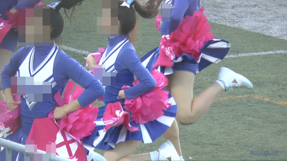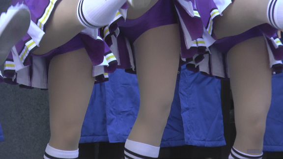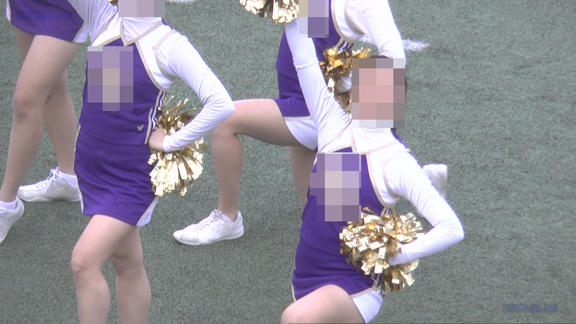 紫・白チアユニ娘たちの本番前のシーンからスタート!ゆる~くスタンツの練習をしているシーンにほっこり。。。。Vアンダーもゆる~くおみ目え。。。そして演技本番へ!パープルVアンダーお目見え倍増!練習から本番まで19分と長尺収録しております!続いては会場が変わりフィールドでの応援チアの模様!白・紫チアユニ娘たちのアンダーは短め紫スパで応援ヒートアップとともにさらに短めに!そして25分ごろよりは々会場での青チアユニ娘の応援のシーンへ!通常は構えの姿勢をとっておりますが、、、、応援シーンになるとスコートをひらめかせ激しい動きに短め青スパもどんどん短めに!!!とてもいいかんじです!!!
