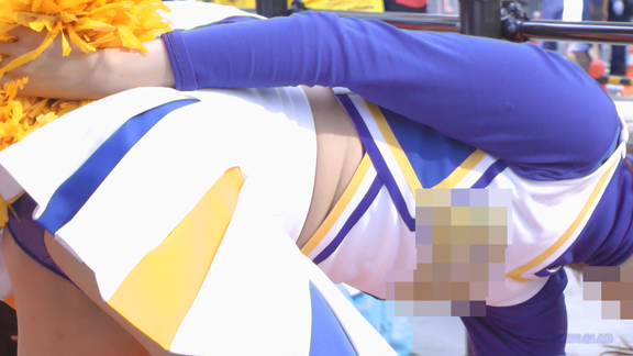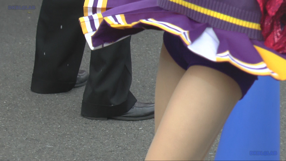 紫・白のタイトなチアユニ娘たちのフィールド応援シーンから!ハイキック連発で短め紫スパがコンニチワしまくりです!!!続いて6分ごろからはステージでのチア娘のシーンへ!赤・白ユニチア娘の登場です!!そしてハイキックシーンでは赤Vアンダーのお目見え連発!!!この模様を長尺11分でお届け致します!お次は18分ごろより紫・白・黄のチアユニ娘の応援シーン!小雨の降る中、一生懸命飛び跳ねております!短め紫アンダーも同時にお目見え!!そして37分ごろからラストまで次の会場のシーンへ、こちらは白・紫のユニ娘登場!とってもキュートな応援演技をしております!!