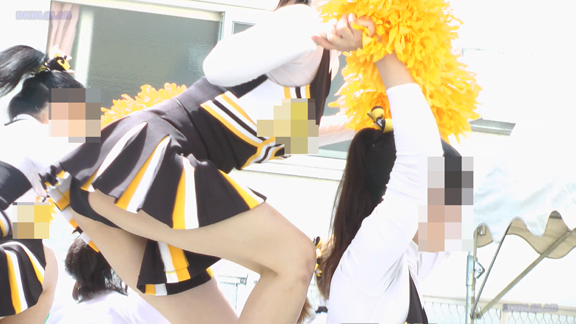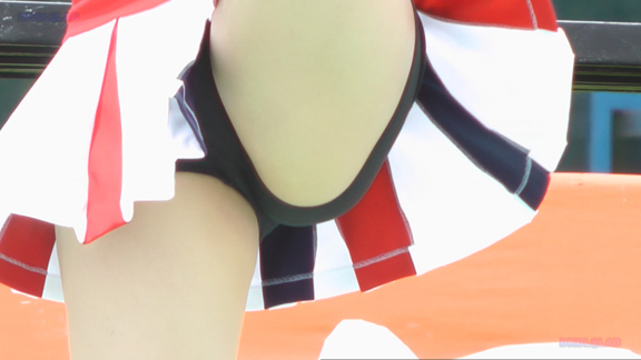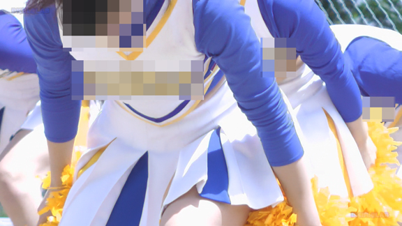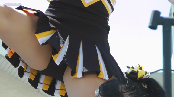 チア娘が舞い飛ぶ際に青Vアンダーがドーンと眼前に!約25分まるっと長尺シーン!安心してご覧いただけます!続いては26分ごろより平場での黒・白・黄のチアユニチームの演技シーンへ!こちらも黒のVアンダーでパカーッ!!絶好調!!!!そして32分ごろからは白・青・黄チアユニチームの登場。応援最中のハイキックの黒Vアンダーがたまんない!!