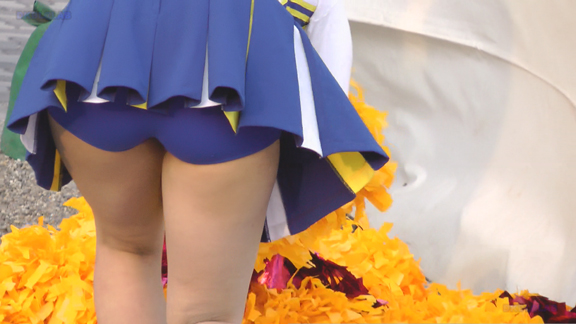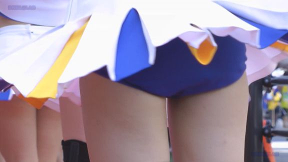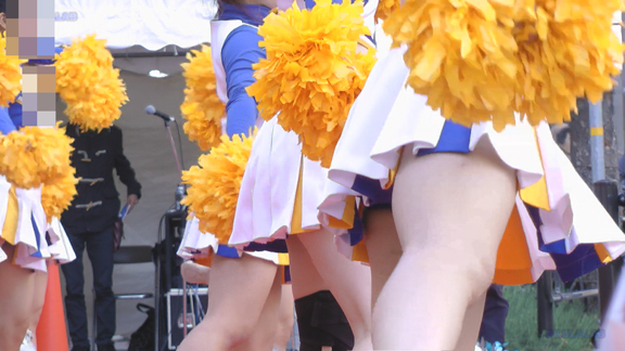 先ほどはステージでの演技でしたが、こちらは平場での演技で目線上にチア娘がいる、何とも良い感じ!眼前に緑Vアンダー、臨場感たっぷりです!26分ごろから白・青ユニ娘の演技後のシーン、皆さんそろってピースサインで記念撮影!風がかなり強く皆さんの青Vアンダーが一斉に!何ともラッキーな瞬間です!29分ごろからは赤のチームTシャツに白・赤・紺スコートのチア娘の演技シーンへ。こちらはブルマのような紺のVアンダーでイイかんじ!36分からラストまで白・紺のチアユニ娘の演技シーン!演技の最中、青のVアンダーが幾度もお目見え致します!!