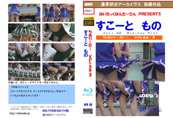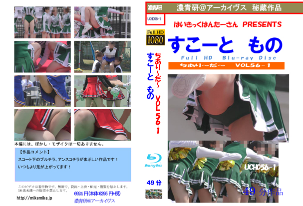 青・白・赤チアユニ娘の平場演技シーンから始まります!ハイキック・回転シーンではお目見え連発!!!青Vアンダーがコンニチワしまくり!!!10分ごろより別会場の平場演技シーンへ、白Tに青白赤スコートのチアユニ娘の演技の模様!ベテランよりチョイ下の初々しい演技がとってもキュート!短め青スパもとってもキュート!そして19分ごろより別会場の平場演技シーン、青・白チアユニ娘の登場!こちらもベテランよりチョイ下の初々しい演技が楽しめます!続いては29分ごろより白・緑チアユニ娘の同会場の平場演技シーンへ!演技中のハイキック・回転シーンではお目見え連発!!!緑Vアンダーがコンニチワンワン!!!37分ごろより19分ごろに登場した青・白チアユニチームの再登場!とっぷり陽が落ちた時の演技模様で、ノースリーブチア衣装娘もひときわ輝いております!そして48分ごろからラストまでは29分ごろに登場した白・緑チアユニ娘の再登場です!
