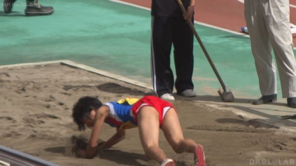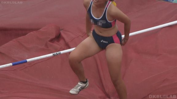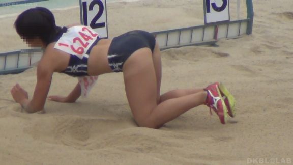 ハードル走の様子からいきなりオレンジレーシングパンツ娘が現れる。フィールド側からの撮影で走り終わった後の様子も見えるお得な内容。走り終わったときの方が食い込み率が高いのでこれはナイス判断!そして普通はスパッツで競技することの多い砲丸投げでも、レーシングブルマで実施の娘がおります。球を投げる瞬間に太ももと尻下のお肉がプルンと震えております。走り幅跳びでも陸ブルの娘が。やや不安定な着地でお尻と太ももにべったり砂が…続いては雨模様になった。しかし陸上大会に中止はない!雨の中、寒々しい景色の中、自己の記録を伸ばそうと努力する陸上娘。けなげでいいかんじ!40分頃にはリレーを終え、バトン継ぎポイントに帰る娘の姿など。スパイクがごつごつするのが嫌なのか競技服装で下は裸足、また上着だけ羽織って下はブルマのまま、で裸足、なんて娘もいます。