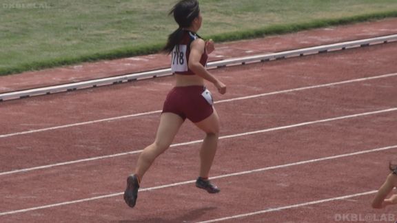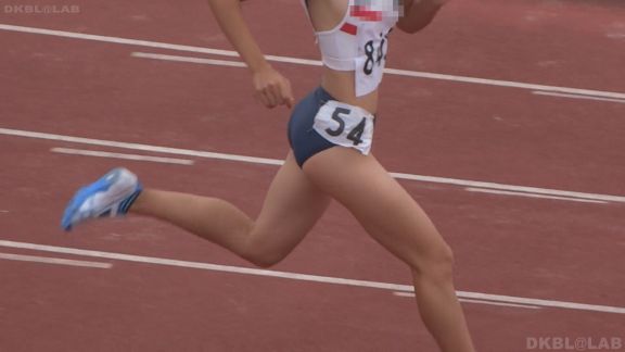 スレンダー幅跳び娘の続きから。この娘もスパッツ焼けがくっきり。スタンド下の至近距離からじっくりと。そしてまたトラック競技に戻ります。100走の後ハードル。走り終わった後にゼッケンを取るシーンがかわいい。次は400m走。400mは1周して選手が帰ってくるのでコレと思った娘をじっくりとシュートできるのが特徴ですが、しっかり押さえてます!スタート前から終了まで網羅。30分頃からの100走では何と出走全7人、すべて違うチームが全て陸上ブルマという奇跡の集合が!!!リレーでは全員ブルマというのは比較的見ますが個人走で全レーンブルマというのは早々お目にかかれません。これは陸パン好きの皆様には絶対お勧め!!ゴールまで完全収録です!その後はリレーシーン。先ほどの奇跡のオール陸ブル100m走で活躍のチームも参戦します。53分頃の400走終わりのシーンにもスゴイシーンあり。ブルマが小さすぎです!!!