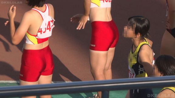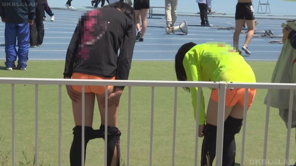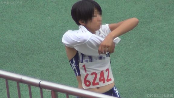 いきなりスタンドの前で競技服装に着替え始める娘の様子から。競技服装に変身したらすかさずチームメイトとハイタッチ!かわいさ爆発!目の前で1枚、また1枚と衣服を脱いでいくのがたまりません。しかも先に下を脱ぐ。上半身はトレーナーのままなのに下のみ競技服装、素晴らしすぎます!これで終わるかと思ったら走った後に帰ってきました!特に3人組のオレンジ陸ブル娘がいい。走り終わった後なのでフツーの女の子の会話をしています。しかも競技服装のまま。高低差無し、本当に目の前でのこの姿。停止して好きな娘をじっくりとご覧ください!30分頃からのフィールドではやり投げ競技の順番待ちのグリーン陸ブル娘が競技服装の上にチャックをしないままのジャージを羽織っている姿がヤバい!ちらちら見えるおへそとお尻周りと太もも…GOODすぎです。47分過ぎには前述のオレンジブルマでやはり上ジャージ下のブルマ娘が出てまいります。