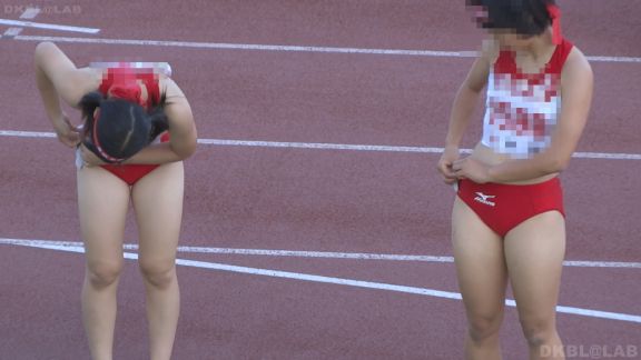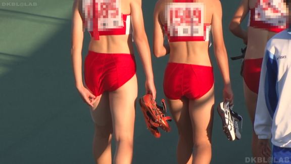 ハードル走の試走のシーンから。選手の読み上げに対応し呼ばれている娘をアップで撮影!そして400mリレーのシーン。おススメのエンジのパッチンブルマのチームも参加しております。48分頃からはやり投げのシーン。参加者が数人、ということも多いこの競技ですがこの大会は10人ほどが集まっていて壮観。集団で露出の高い服装をしてやりを持っているのがなんかシュールな絵になっております。やり投げ競技はスパッツで行う娘が多いですがブルマでがんばっている娘も数人おります。日々の練習はスパッツで行っているのでしょう、競技服装のVパンとの間の日焼けしていない太ももがヤバいです。