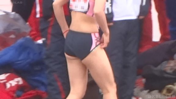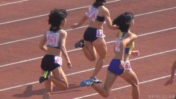 高跳びの続きから。ブルマっ娘が順当に高さを稼いでいきます。跳躍でグーンと伸びでパツぱつになったブルマをキュッキュッと直しますがさすがはハイビジョン、ブルマがブルンと揺れているシーンも克明に記録しております。高跳びでもブルマ娘の確率の高さ!7割ほどに達しスゴイ確率です。38分頃からは200m走。4-1でご紹介したシンプルな赤ブルマ娘とピンクスパッツ娘のそろい踏み。水色地に赤ラインのブルマ娘もいい感じです。