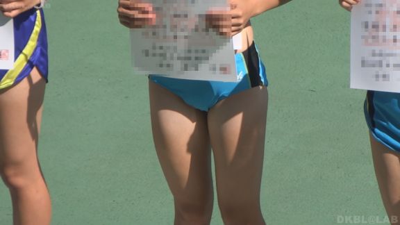 フィールドのやり投げとトラックの長距離走を2元中継。長距離走ではブルマの娘は少なくなる傾向にありますがこの大会は違う!雨のなかをこんな露出の高い恰好で走っているこのけなげさ…感動します。競技前のゼッケン確認シーン、記録係員に向かっておもむろに上着のスパッツをずり下げてブルマと太ももをチラ見せしているのがなんかエッチ。ここでは水色地に黄色のラインのユニと赤地に水色のラインのブルマ娘がいい感じです。内容はハードル、100m走、高跳びなど。