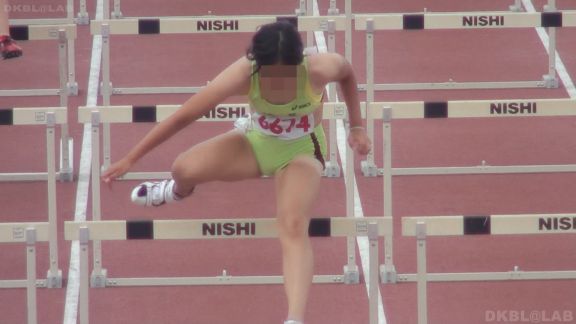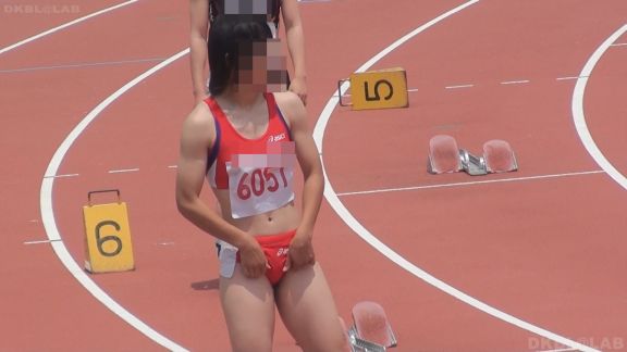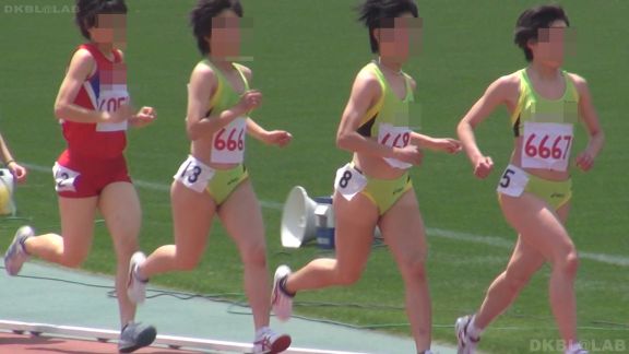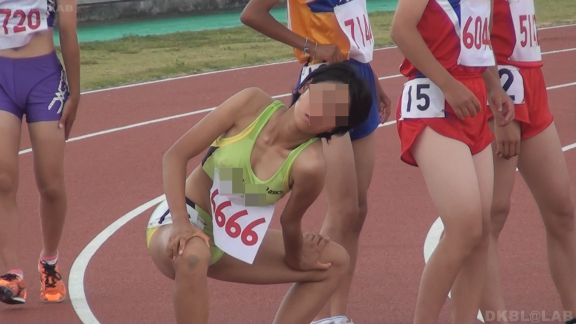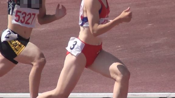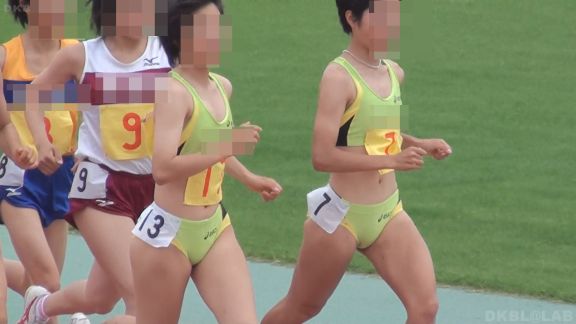基本の100M走から。そして黄緑ユニチームも相変わらずの大量選手投入。4分過ぎにはフレームいっぱいに黄緑ユニがあふれるシーンも。8人登場しますが全員Vパン。これはすごい。1500M(かな?)の中距離走なので何回もスタンド前に登場、じっくりご覧いただけます。12分過ぎには緑ブルランパン、スレンダーな体つき、という陸上娘の基本スペックを押さえながらもメガネっ娘というレアな組み合わせ娘が登場。真面目そうな顔立ちに似合わぬ激しい露出とのギャップがたまりません。