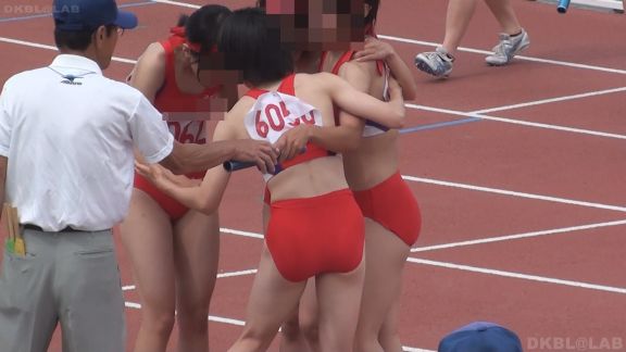 シャツ黄色ランパン青色チーム娘が登場。背高スレンダーにベリーショートの今っぽい髪型、小っちゃいお顔と相変わらずのセンスの良さ。決して都会とは言いにくい地域からの参戦でありながらこのクオリティの高さはなんなんでしょう。ハードルの本走前練習シーンでは「飛び」のイメージを脳内再生しているのかまったく食い込みを直さずスタート位置に戻っていくシーンなど。41分ころからはお待たせの1600Mリレーシーン。団結、気合入れの象徴であるハチマキ結び娘も多数。ハチマキが加わるだけで萌度が一気にアップ!今回は赤Vパンチームに注目。そして上黄下青チームもしっかりエントリーされています。スタンド目の前でのバトン継ぎ、死力を尽くして走った後の食い込み全開シーン、走り終わり順位が確定した後、メンバーとの陸パン姿のままでの抱擁シーンなど、やはり1600Mリレーは見どころ多し!まだ書くことがある。お次のシーンではエンジ地に白ラインアクセントのミズ○Vパン娘が登場。これもいいので紹介しないと気が済まない。特に日々の練習を重ね、白ラインの部分がこすれてラインがとれかかっているというのが使い込んでいる感じがしてグーなんです。しかもやや肉厚な感じの娘が3人このユニで登場します。ちょっといろいろ書きすぎたので5の紹介へ移ります。