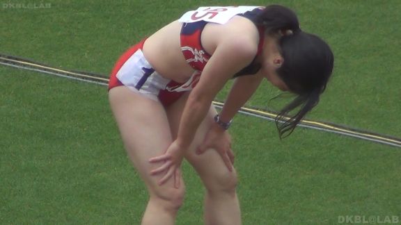 跳躍競技に臨みますが耳元にはアクセサリーがきらり。Jエレガンスな装い。だけどVパン。このギャップがいい。そしてリレー競技へ。複数の選手が同じ格好で集うリレーはやっぱりスゴいです!1人でももちろん素晴らしいですが、それが何人か集まった時の破壊力と云ったらもう…サッカー女子選手のようなヘアバンドを締めて気合い十分。走り終わりの安どの表情、4人のVパン娘が密集するシーンも横アングルで記録!