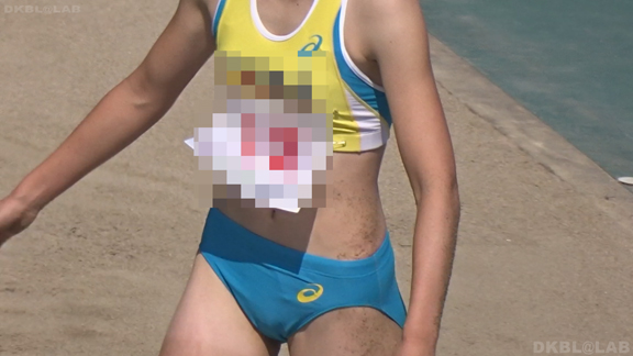 棒高跳び。こちらでも束ね髪の上水色黄色下黒Vパン娘がアップに余念がない。スタイル抜群。順番が来てタッタッタッと走って棒がびよーんと曲がって跳躍成功。立ち振る舞いの余裕さからみて相当なキャリアの持ち主と思われます。待機中にはニコニコと他の選手とおしゃべりしている様子もかわいい。15分超のロング収録。美人さんの上いろいろな表情をするので飽きません。後半はユニが全国のものに変わっての陸上大会。全国の代表として選ばれた選手だけあってレベルがすごい。